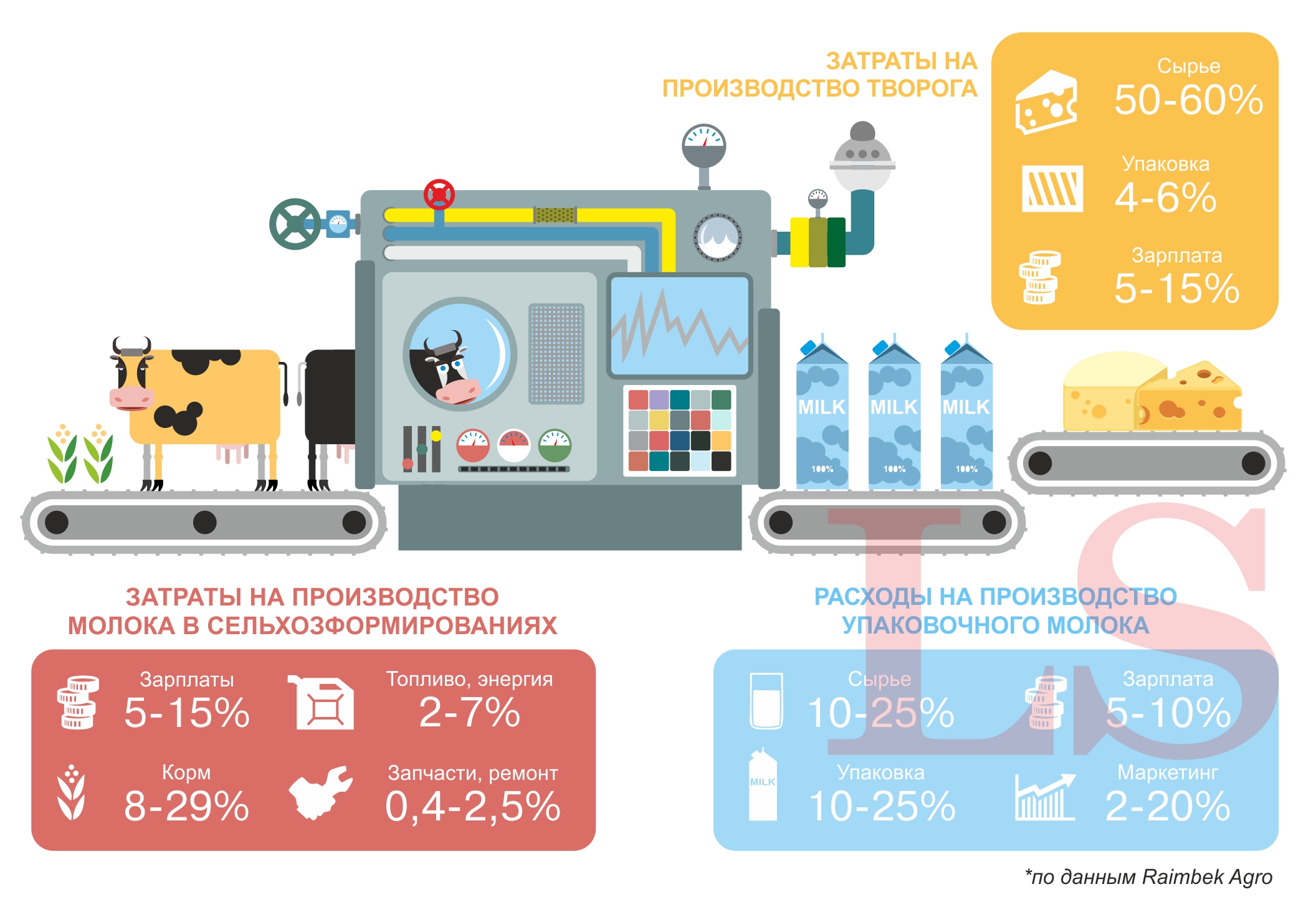 "Так, при производстве упакованного жидкого молока в структуре себестоимости затраты могут колебаться следующим образом: сырье – 10-25%, упаковочный материал – 10-25%, зарплата – 5-10%, маркетинг – 2-20%", – уточнили LS профучастники рынка.