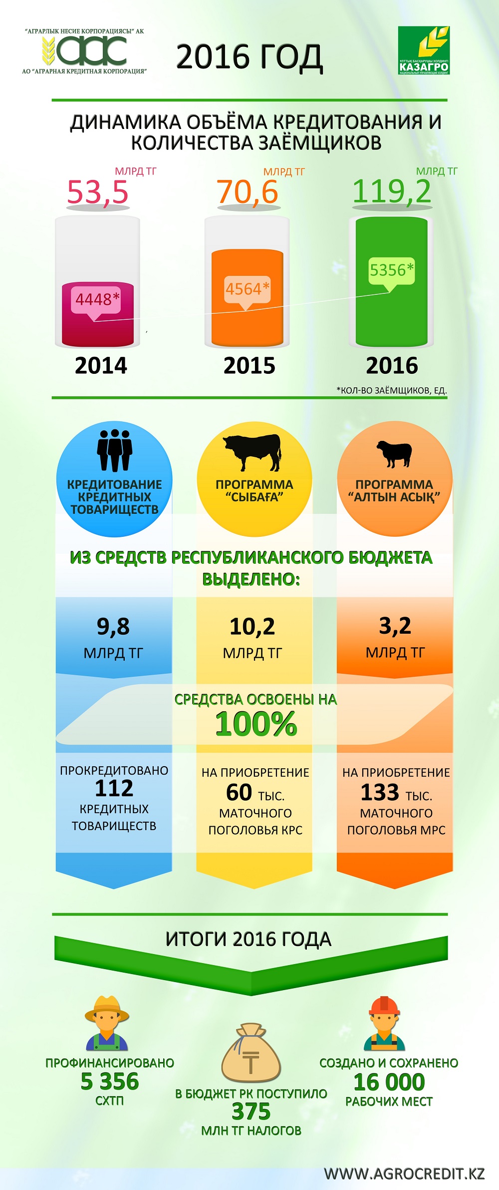 В 2016 году корпорация на 100% освоила средства, выделенные из республиканского бюджета на развитие агропромышленного комплекса.