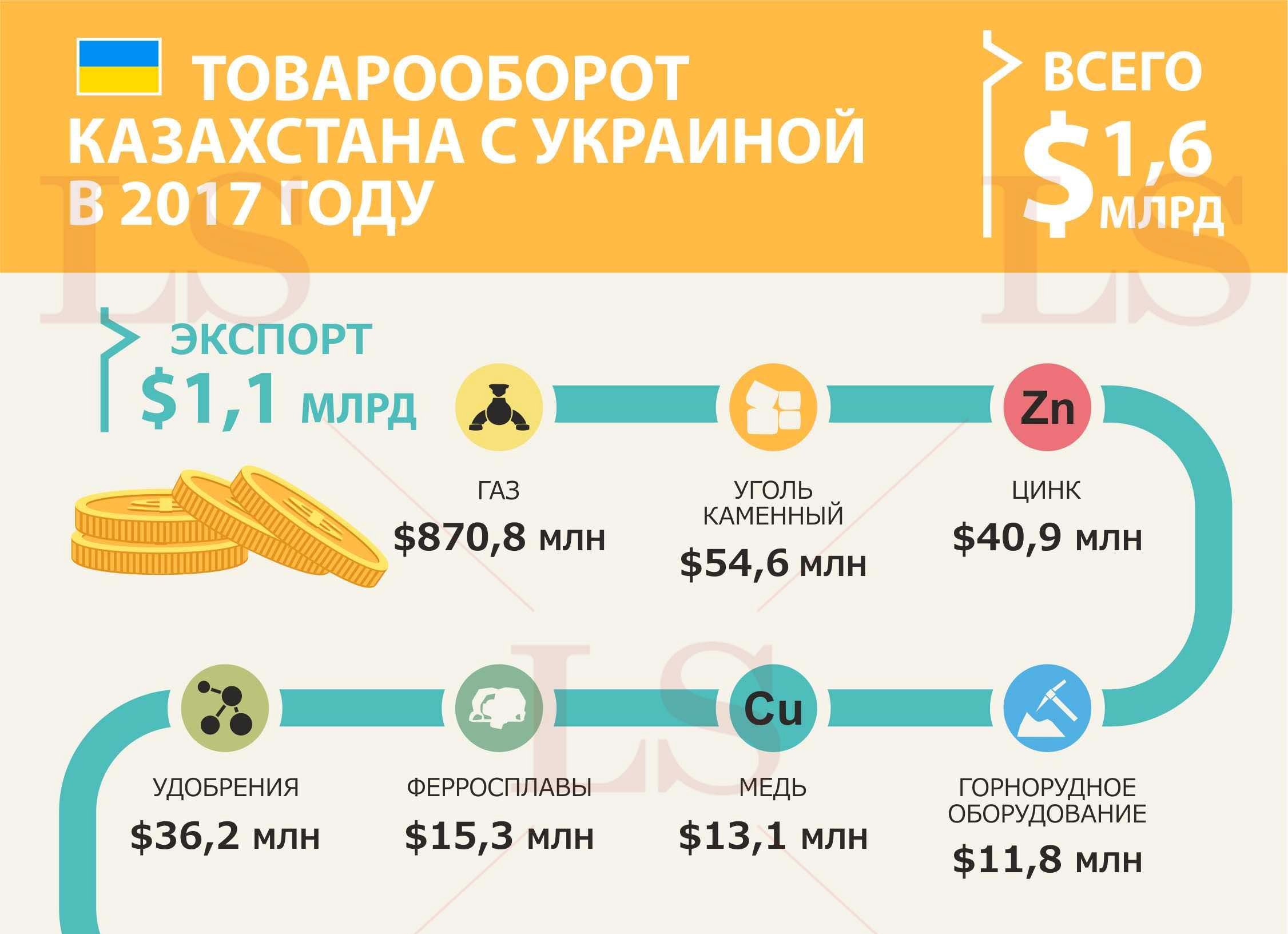 В 2017 году товарооборот Казахстана с Украиной достиг $1,6 млрд, передает LS.