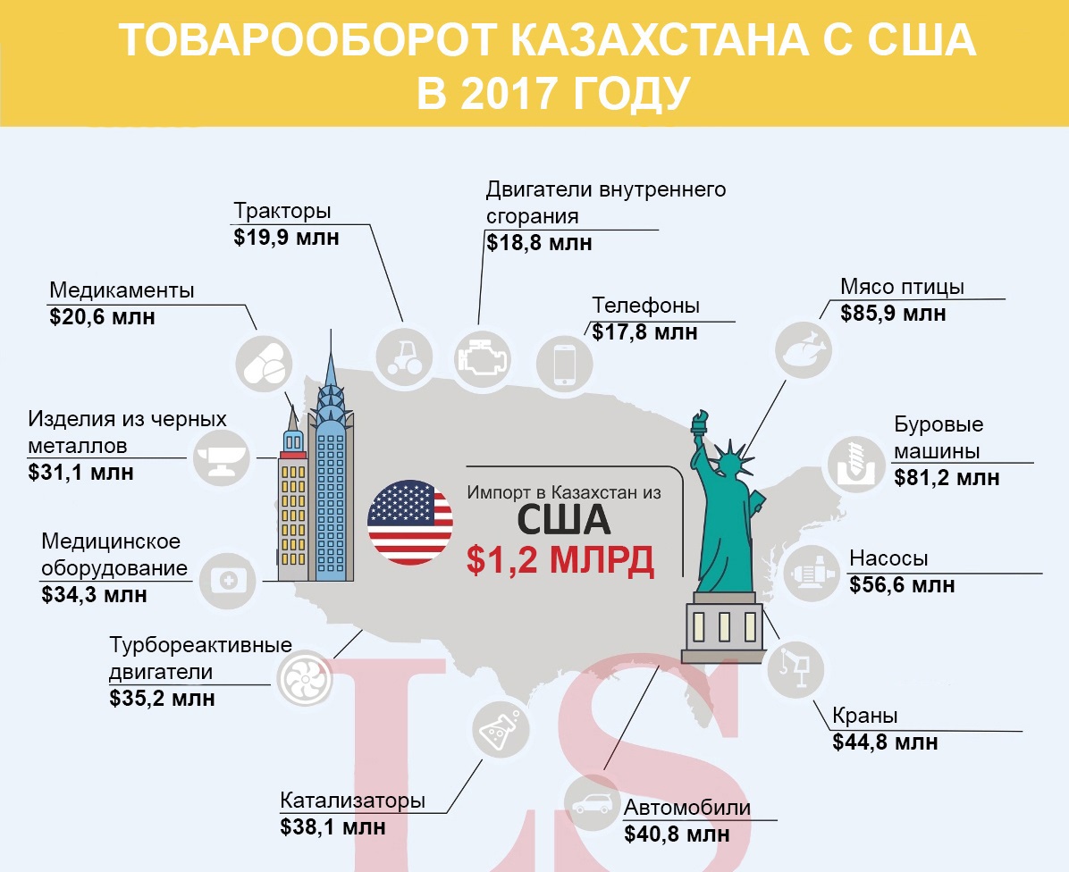 В 2017 году Казахстан наторговал с США на $1,6 млрд, передает LS.
