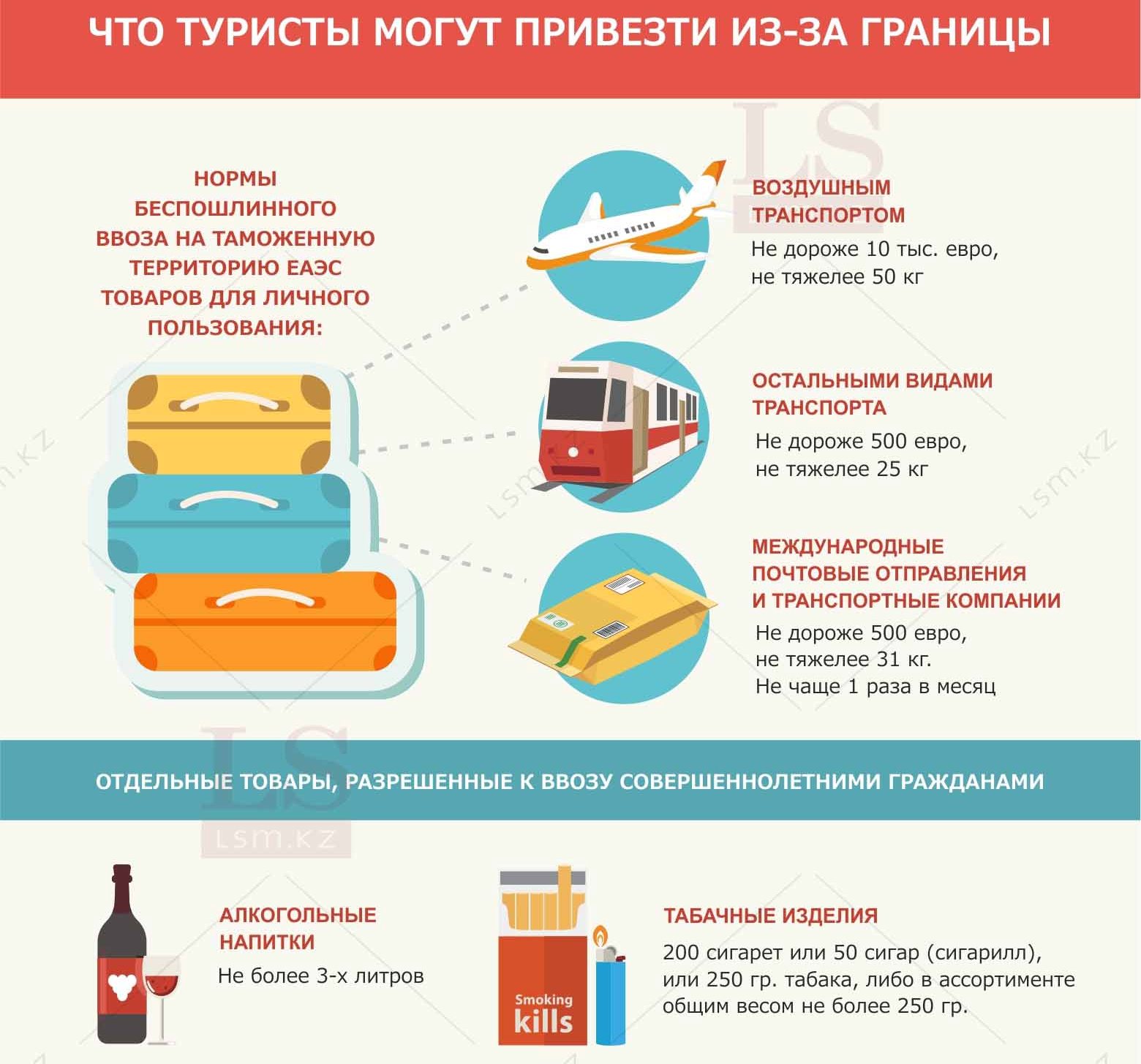 Тогда как железнодорожным видом транспорта и автомобильным можно завезти в страну продукции лишь на 500 евро. Ограничение по весу составляет 25 кг.