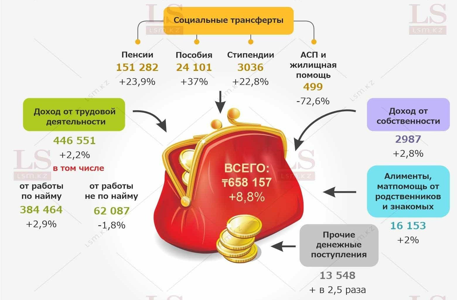 Чтобы потратить деньги, их сначала надо где-то достать. LS посмотрел, как и откуда казахстанцы получают доход.