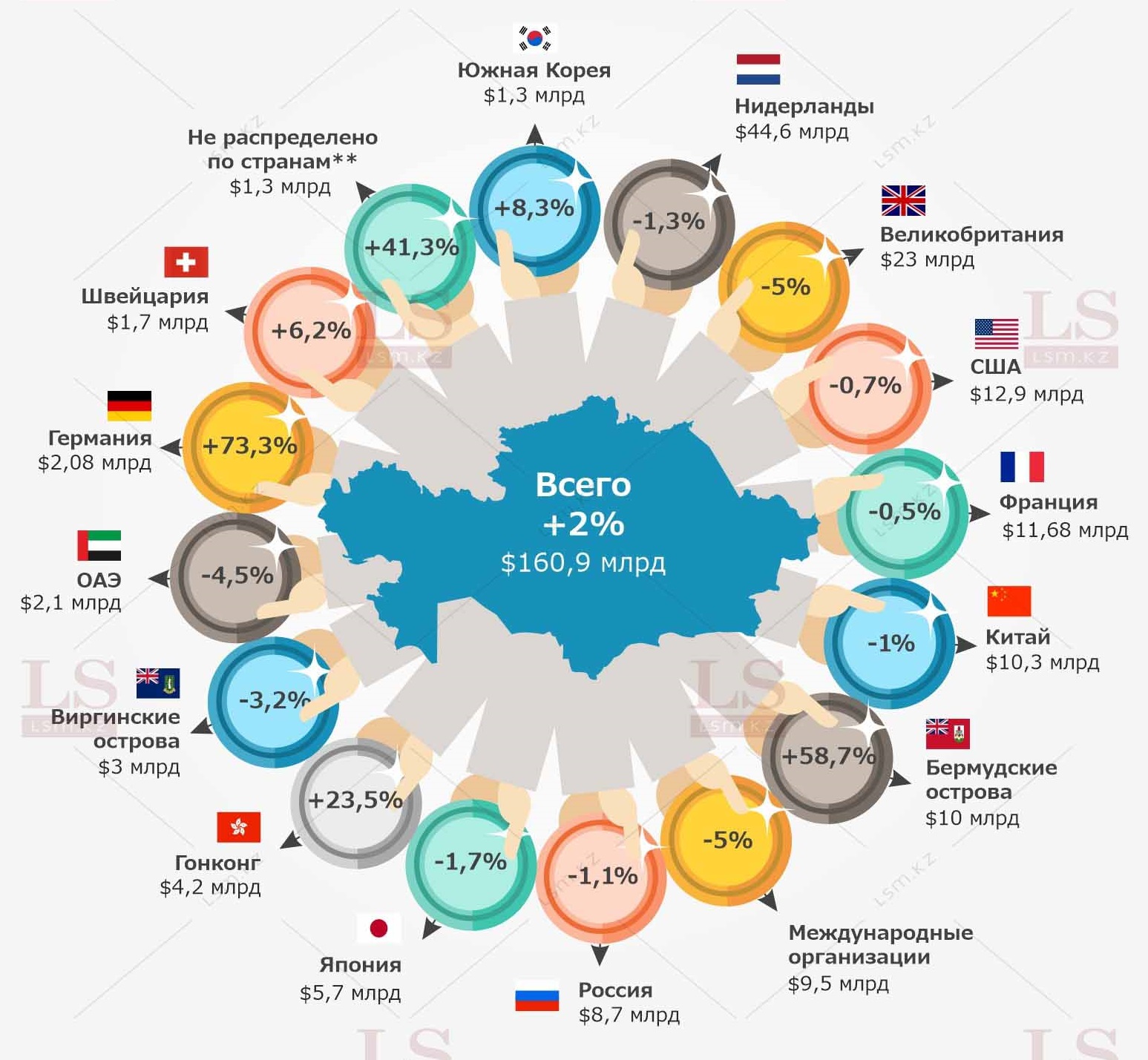 Внешний долг Казахстана за год вырос на 2%. LS подготовил инфографику о том, перед какими странами наибольшие обязательства.