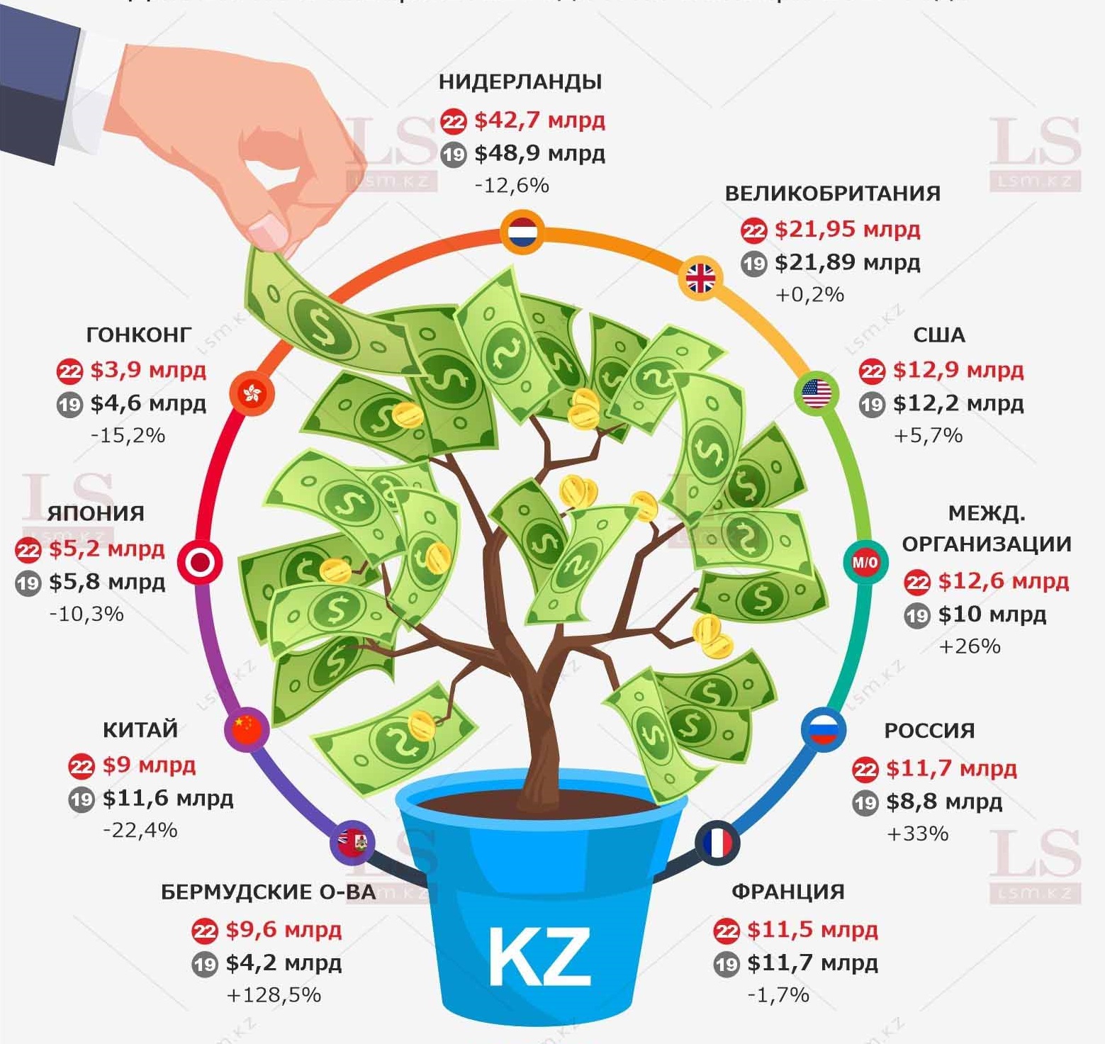Вместе с тем обязательства Казахстана перед Францией превысили $11,5 млрд (-1,7%), Бермудскими островами – $9,6 млрд (+128,5%), Китаем – 9 млрд (-22,4%), Японией – $5,2 млрд (-10,3%) – и Гонконгом – $3,9 млрд (-15,2%).