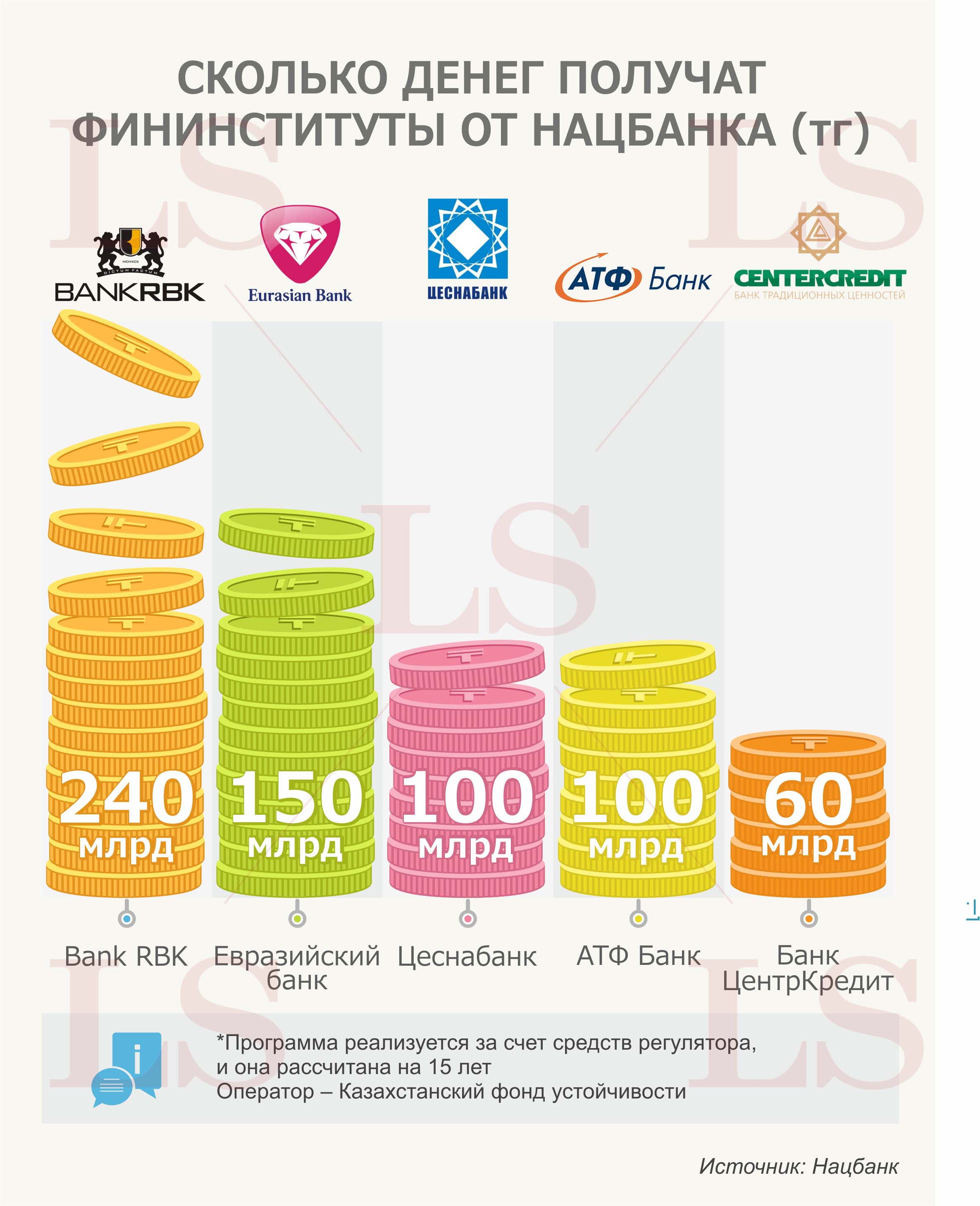 Напомним, регулятор разработал программу повышения финансовой устойчивости. В ее рамках будет оказана помощь банкам на 600 млрд тенге. Она будет реализована за счет средств регулятора и рассчитана на 15 лет.