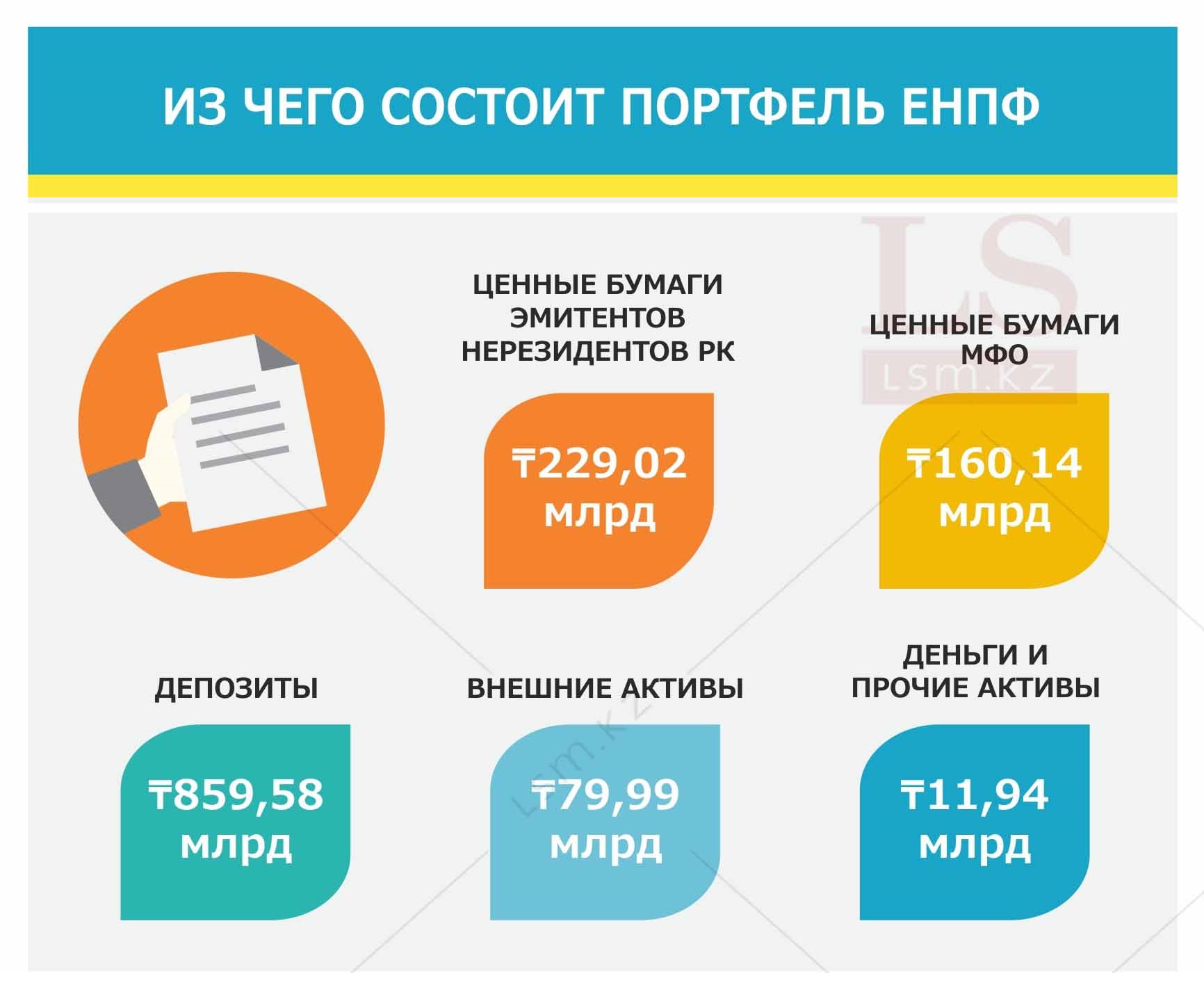 По данным Национального банка на 1 октября 2018 года, рост портфеля Единого накопительного пенсионного фонда (ЕНПФ) составил 1,1 трлн тенге, или 14,3%. При этом текущая стоимость его портфеля равна 8,8 трлн тенге.