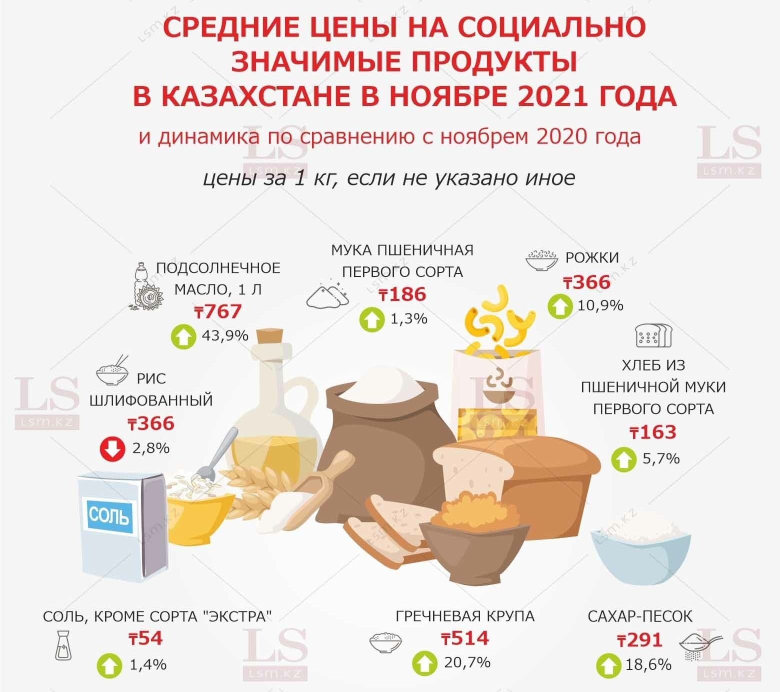 Правительство Казахстана четвертую неделю подряд фиксирует нулевой рост цен на социально значимые продукты. LS в свою очередь разбирает в инфографике то, как менялась их стоимость в течение года.