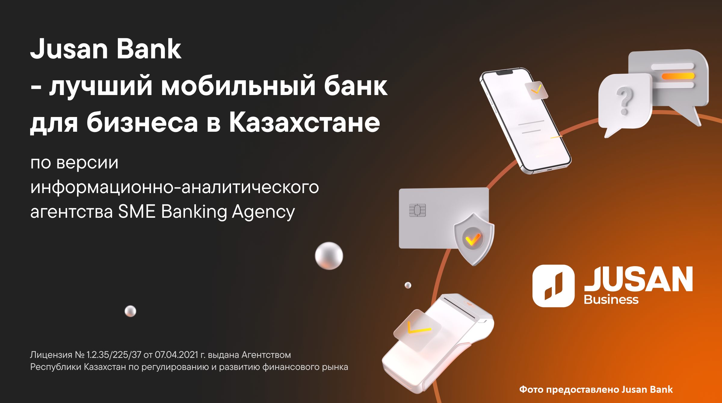 Информационно-аналитическое агентство SME Banking Agency презентовало рейтинг цифрового банкинга для малого и среднего бизнеса (МСБ) в Казахстане. Победителем в номинации "Лучший мобильный банк для бизнеса" назван Jusan Bank с мобильным приложением Jusan Business.
