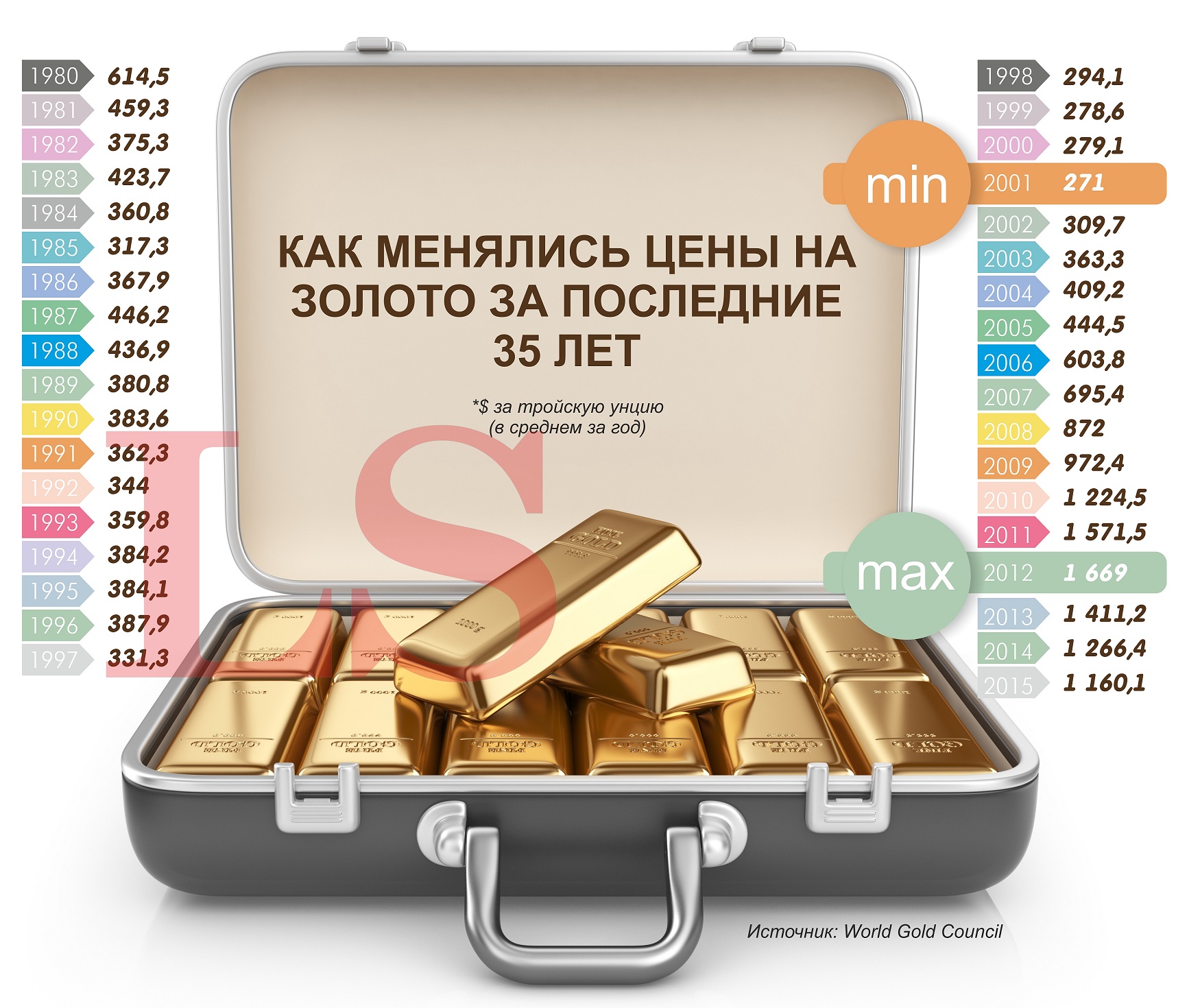 За последние 35 лет золото подорожало на 77,5%, а с начала 2016 года - на 1,3%. LS подготовил инфографику о том, как менялись цены на драгоценный металл в данный период.