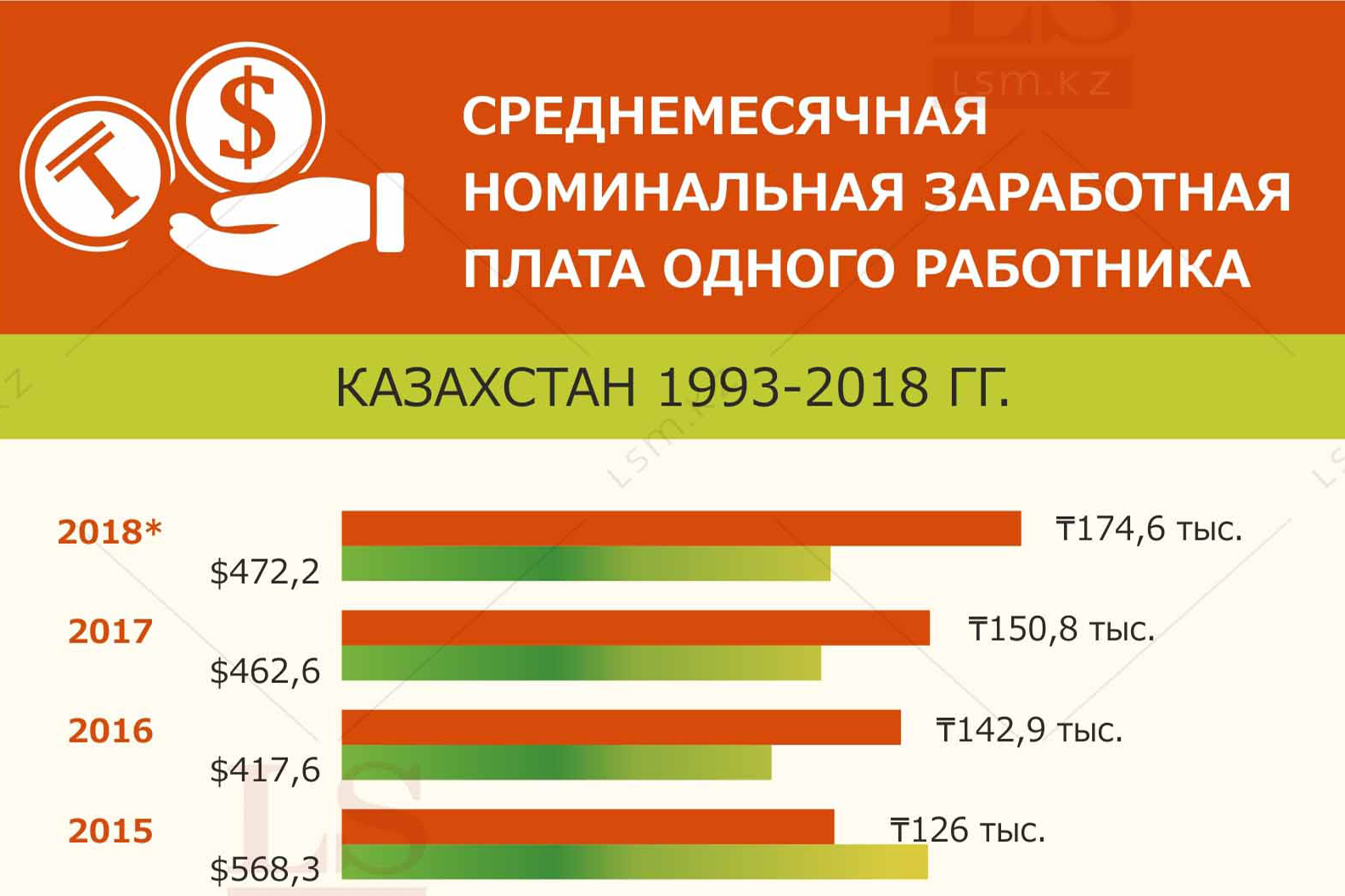 Редакция LS решила выяснить, как менялась средняя номинальная зарплата одного работника в Казахстане за годы независимости.