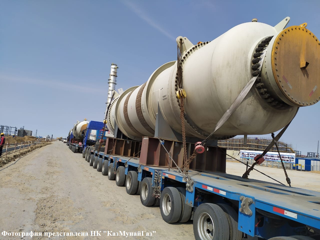 "В первых числах марта отечественным производителем SEWON VERTEX было поставлено основное оборудование – емкость-ресивер воздуха и расходная емкость. Также в конце марта той же компанией были поставлены емкость продувки и питательная емкость деэтанизатора, которая, кстати, была смонтирована практически сразу после поставки на площадку. Монтаж остальных емкостей планируется осуществить в середине апреля", – отметил инженер департамента по контролю строительства Айдар Жангабылов.
