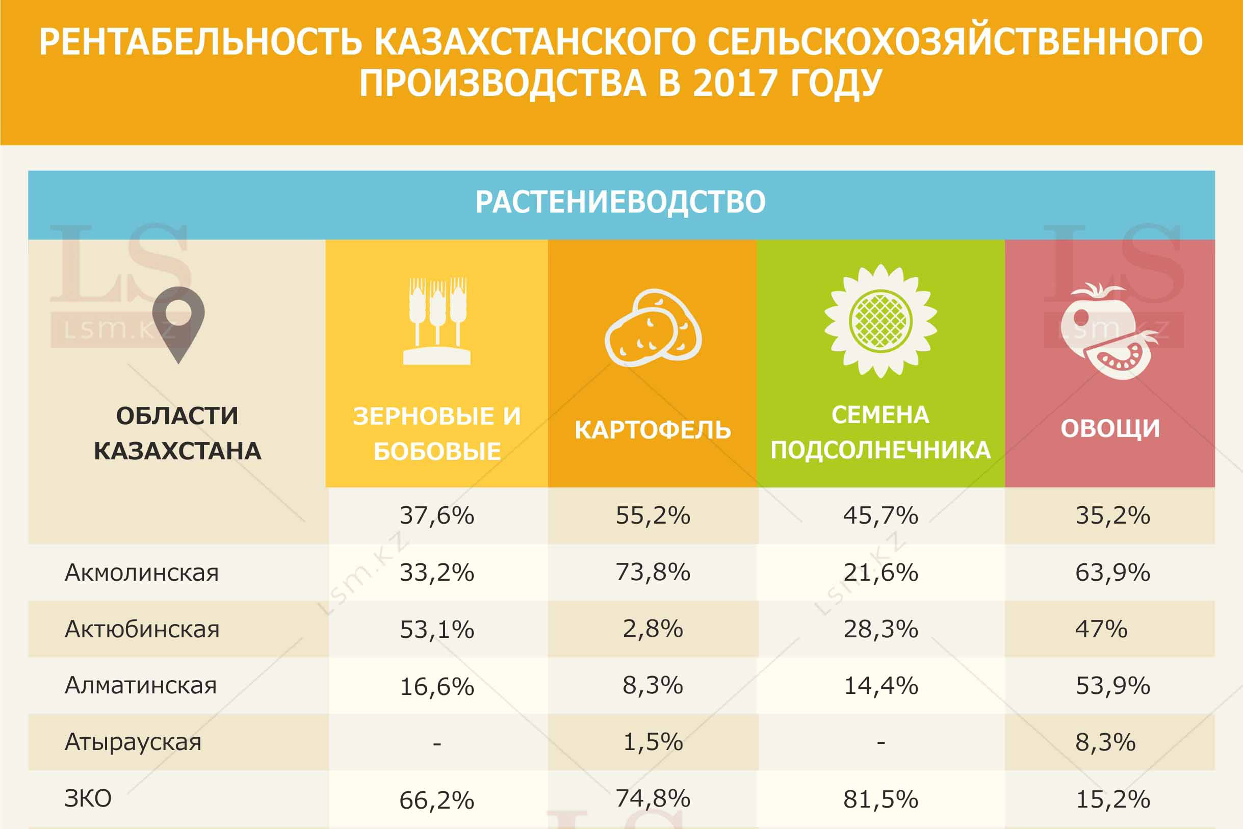 LS подготовил вторую часть инфографики о рентабельности сельского хозяйства в Казахстане.