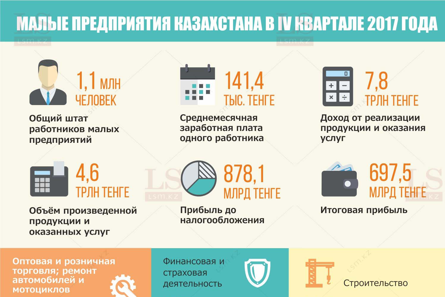 В IV квартале 2017 года на малых предприятиях Казахстана работали 1,1 млн человек, передает LS.