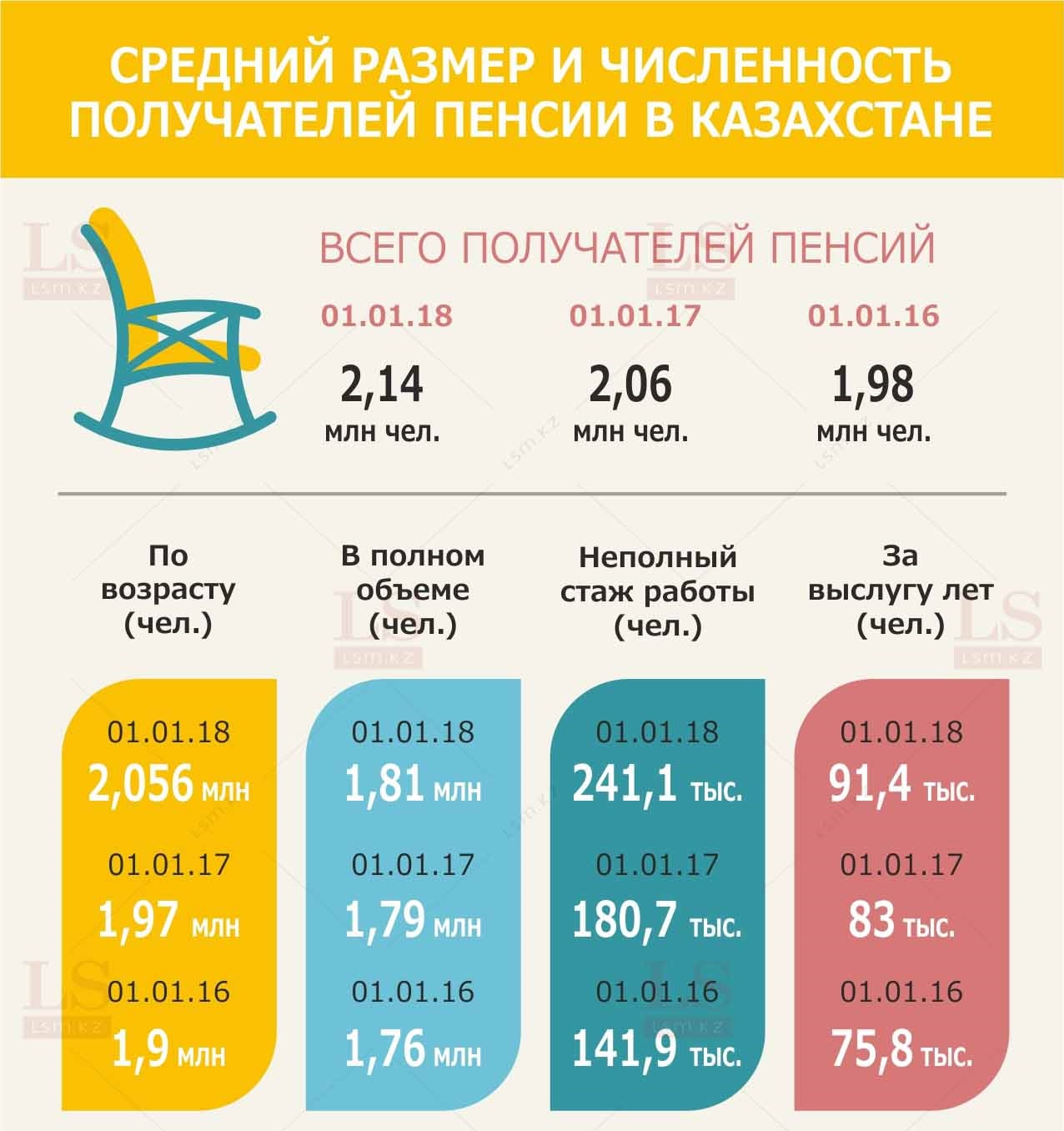 Средний размер месячной пенсии в 2018 году составляет 50,85 тыс. тенге. В то же время в прошлом году этот показатель был 42,47 тыс. тенге.
