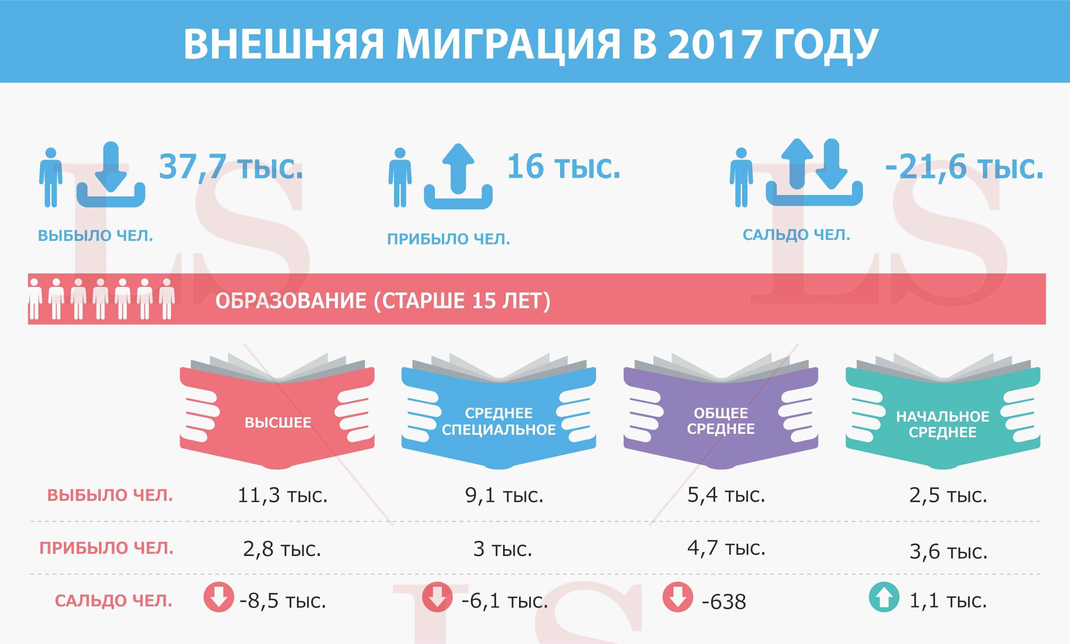 В 2017 году из Казахстана уехало 37,7 тыс. человек, при этом приехало в страну 16 тыс. человек. Сальдо сложилось отрицательным и составило -21,6 тыс. человек, передает LS.