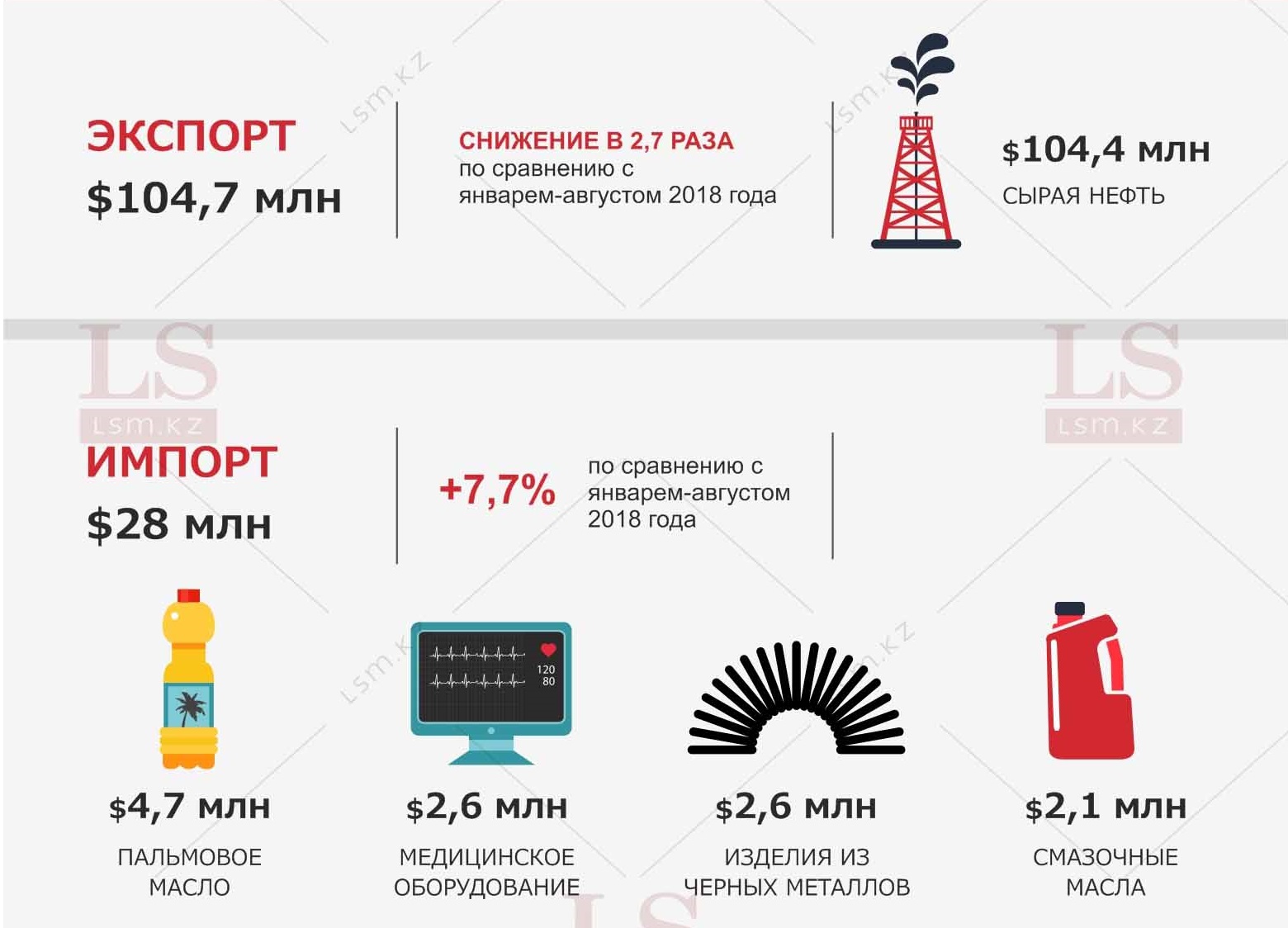 А что касается импорта, то за восемь месяцев 2019 года он увеличился на 7,7% по сравнению с восемью месяцами 2018 года и составил $28 млн. Однако перечень импортных товаров оказался намного разнообразнее.