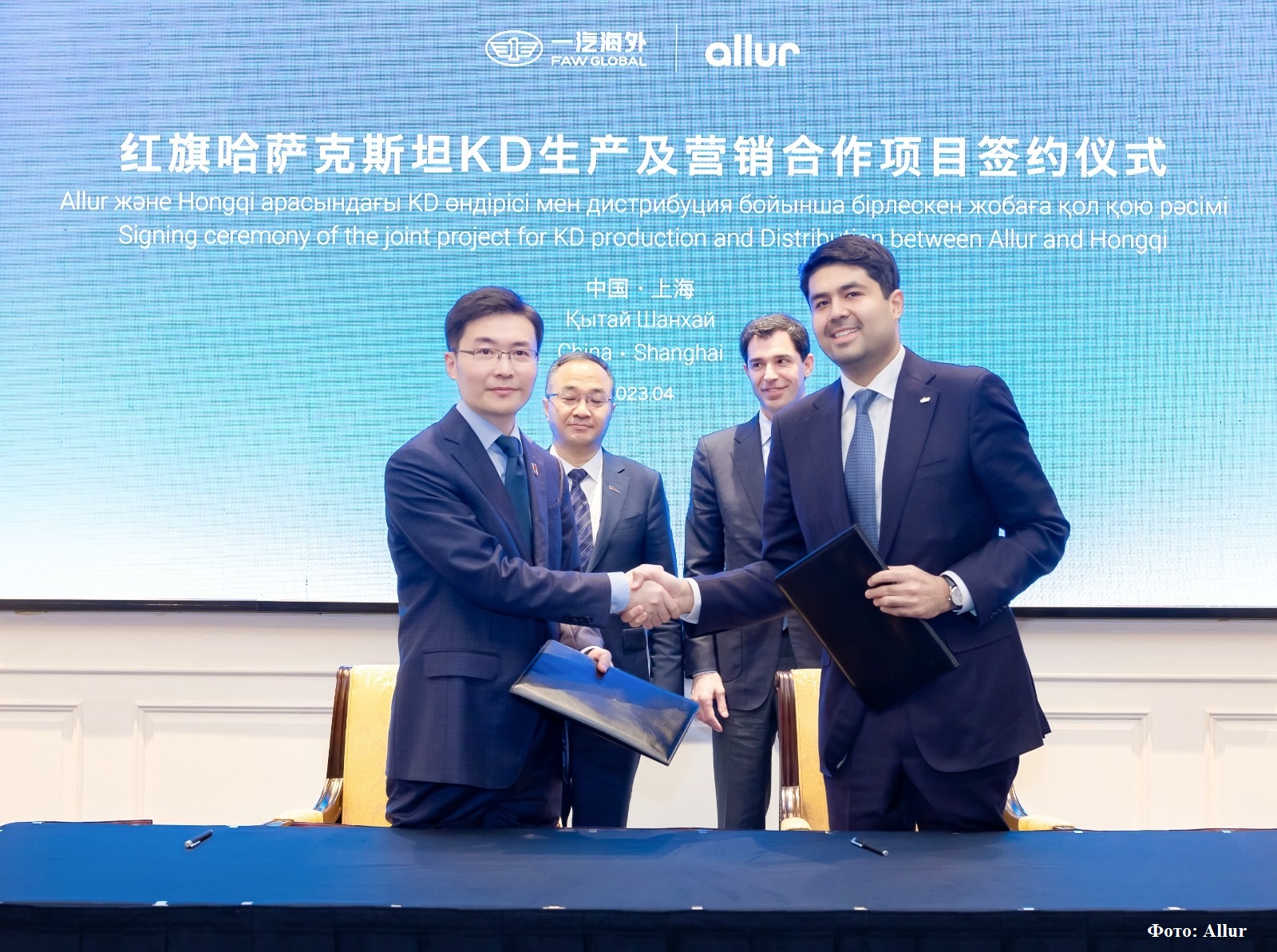 В рамках участия в одной из крупнейших мировых выставок автомобильной промышленности Auto Shanghai 2023 казахстанская компания Allur подписала соглашение о сотрудничестве с китайским концерном FAW (First Automotive Works). Партнерство включает в себя производство и дистрибуцию бренда Hongqi как с премиальными представительскими моделями, так и с массовыми автомобилями средней ценовой категории.