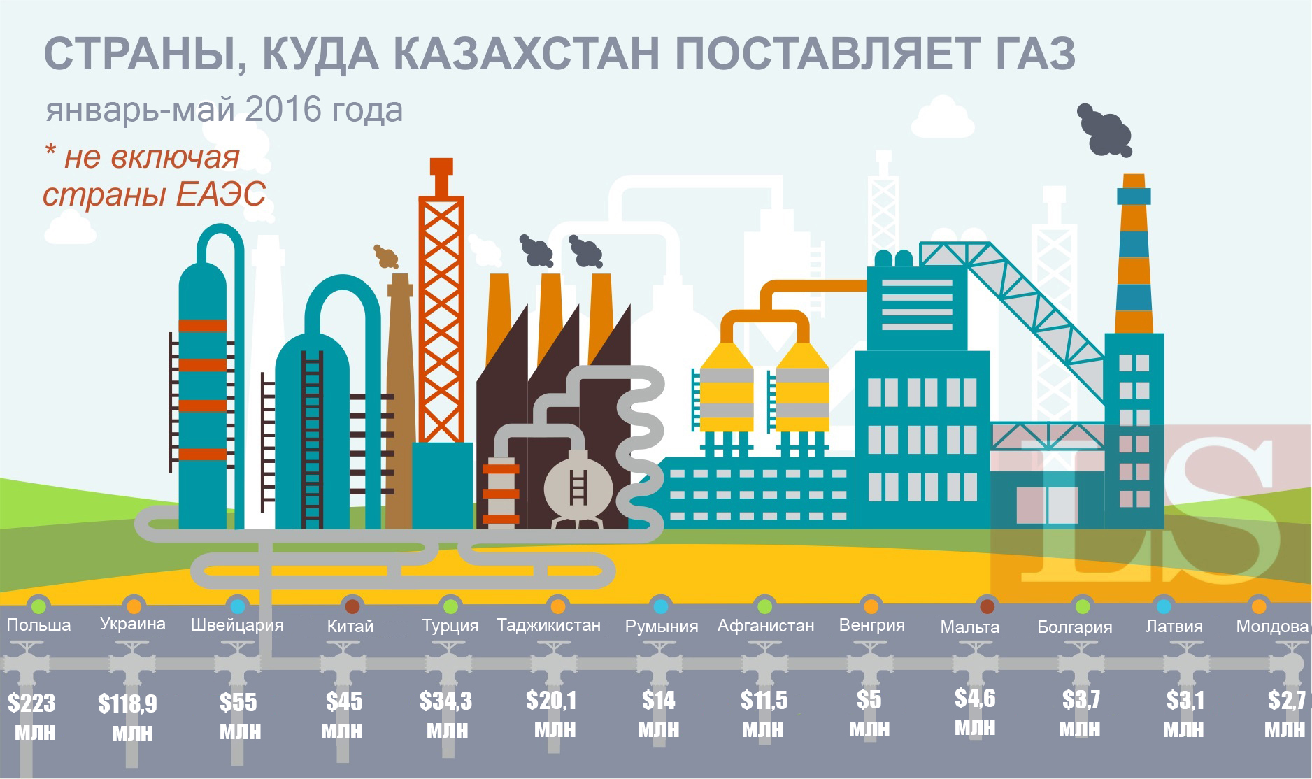 В январе – мае 2016 года Казахстан экспортировал газ на $550,1 млн, передает LS.