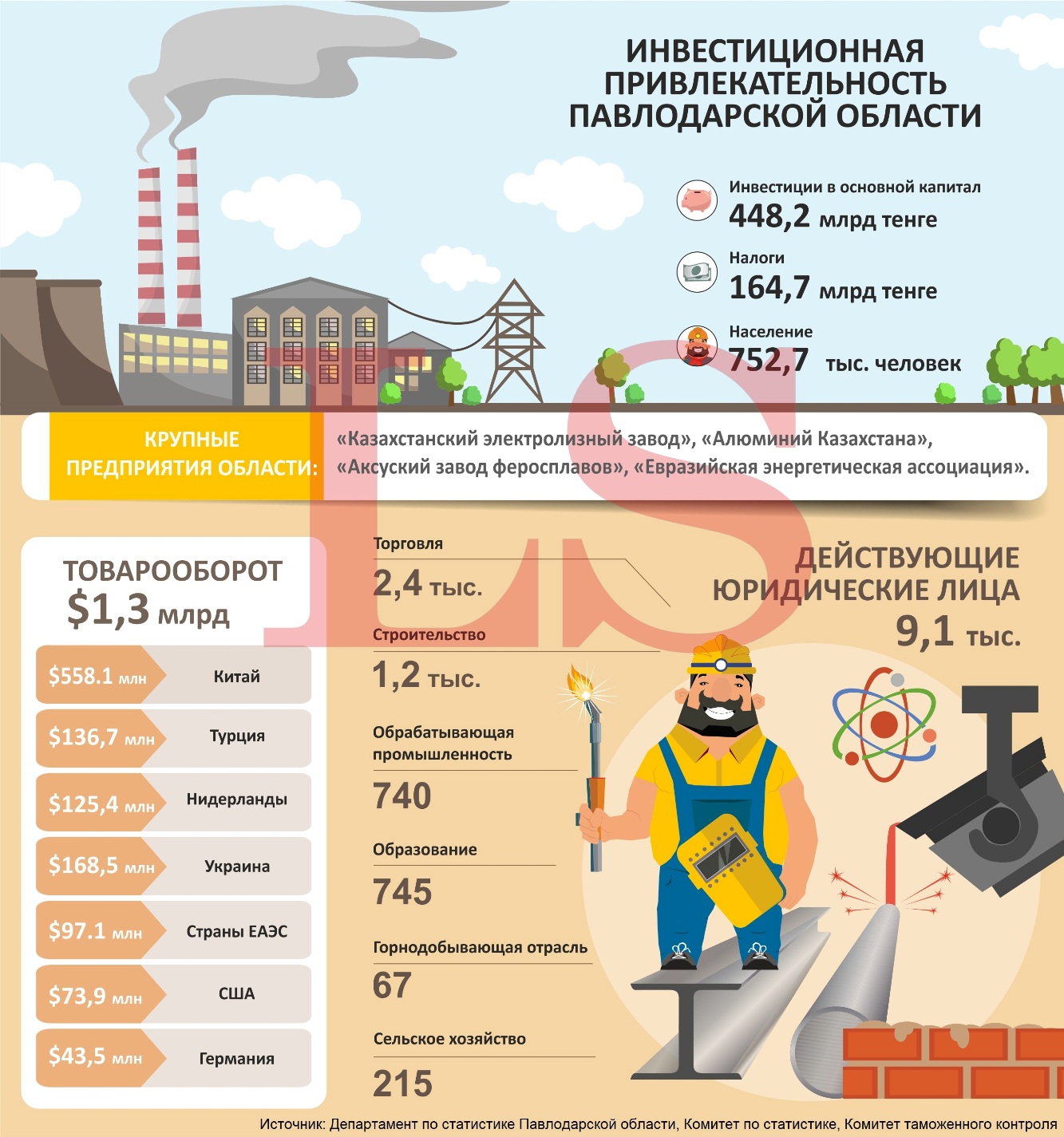 LS продолжает публиковать цикл инфографик об инвестиционной привлекательности регионов. В данном обзоре представляется Павлодарская область.