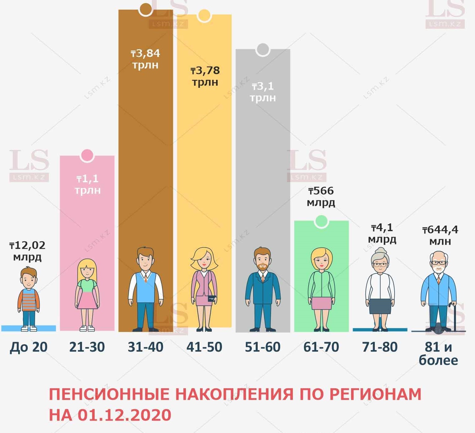 LS подготовил инфографику о том, жители каких регионов Казахстана накопили больше всего денег на старость.