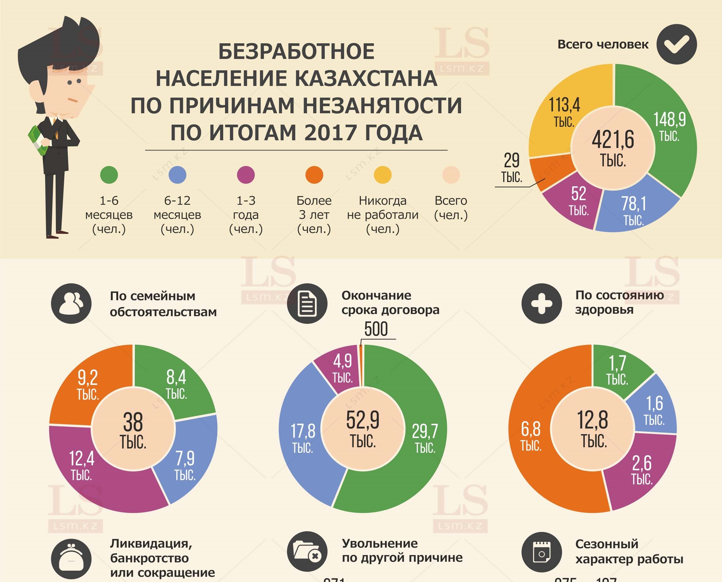 В 2017 году в Казахстане насчитывалось 421,6 тыс. безработных. При этом 113,4 тыс. человек никогда не работали, передает LS.