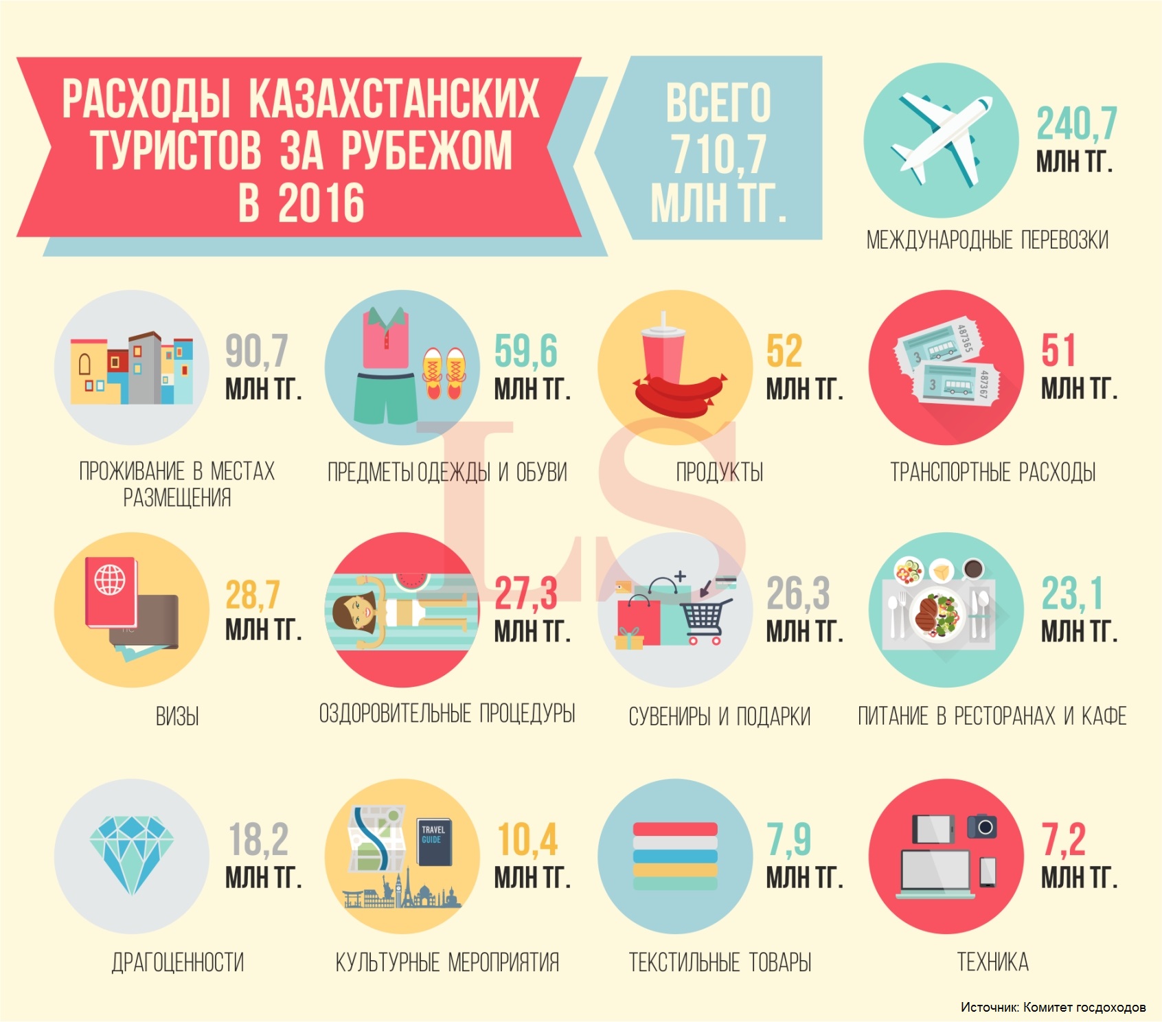 В 2016 году расходы казахстанских туристов за рубежом составили 710,7 млн тенге, передает LS.