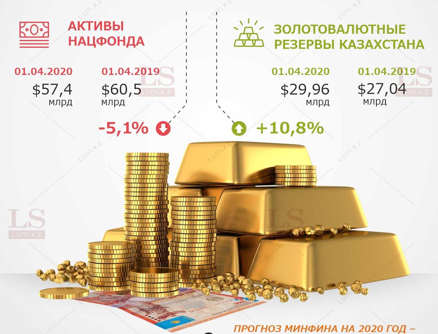 Согласно данным Национального банка, на 1 апреля 2020 года золотовалютные резервы Казахстана достигли почти $30 млрд. За год они выросли на 10,8%. Для сравнения: на 1 апреля 2019 года ЗВР составляли чуть более $27 млрд.