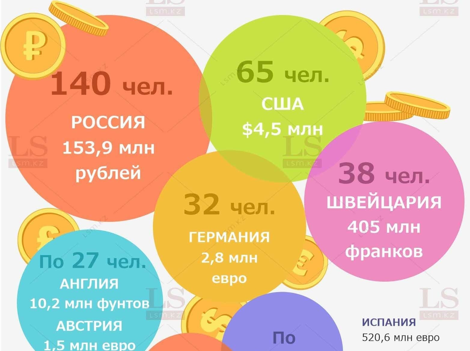 В Казахстане 440 человек, прошедшие первый этап всеобщего декларирования, имеют счета в зарубежных банках, в том числе в России, США и Швейцарии. LS выяснил, в каких еще странах хранятся их деньги.