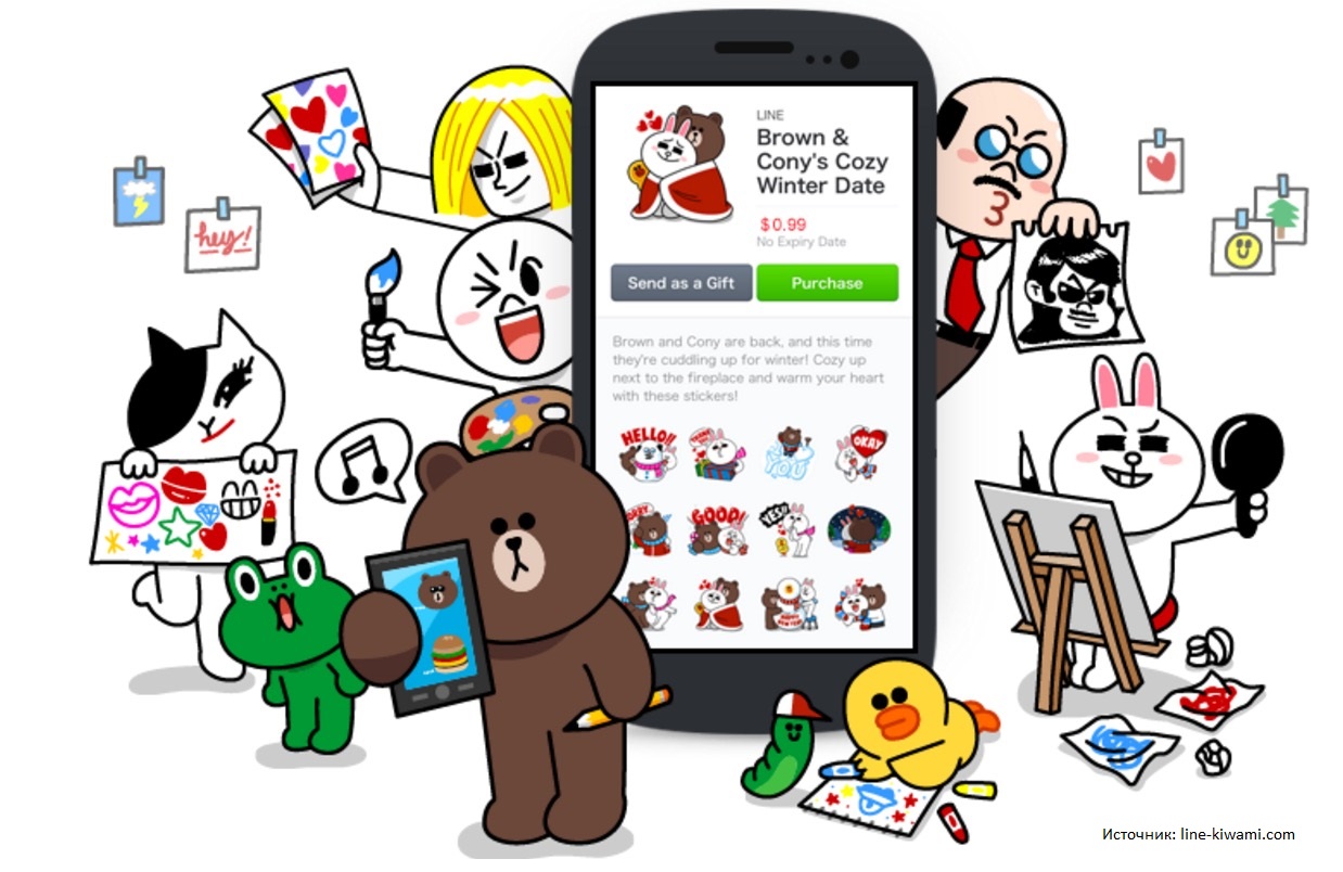 Общение с помощью стикеров стало настолько популярным, что LINE Corp. запустила два мультсериала с персонажами мессенджера, выпуск комиксов, игрушек, кружек, сумочек и прочей фан-дребеденью, которая стоит в буквальном смысле сотни миллионов долларов выручки в магазинах.