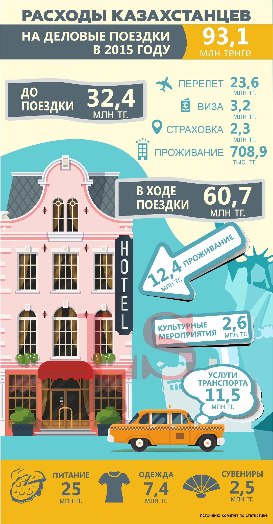 Казахстанцы потратили на деловые поездки за границу в 2015 году 93,1 млн тенге, передает LS.