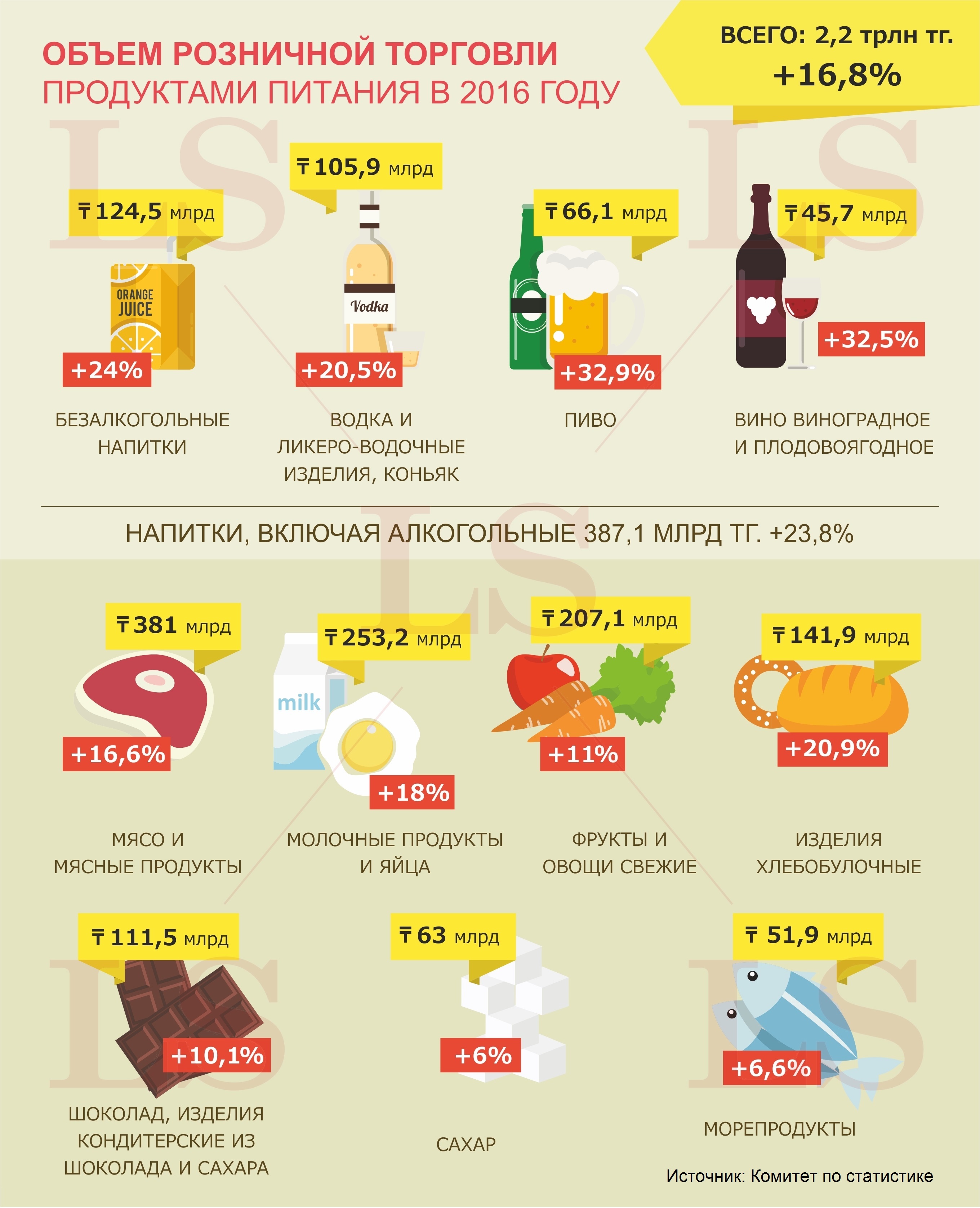 В сравнении с аналогичным показателем 2015 года рынок продуктов питания увеличился на 16,8%.