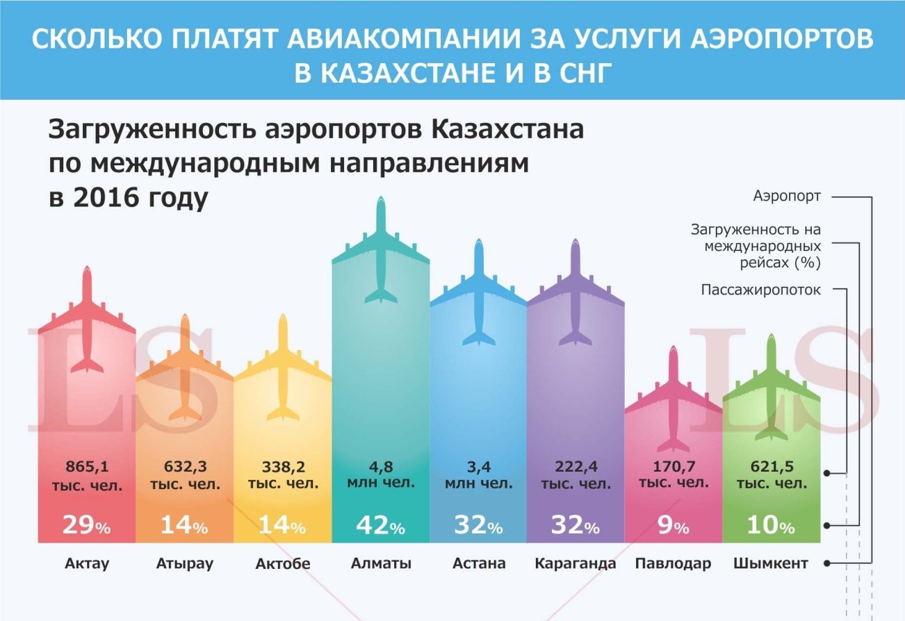 LS решил выяснить, какие сборы взимают казахстанские аэропорты с авиакомпаний за взлет и посадку на международных направлениях, а также узнать уровень загруженности по зарубежным рейсам.