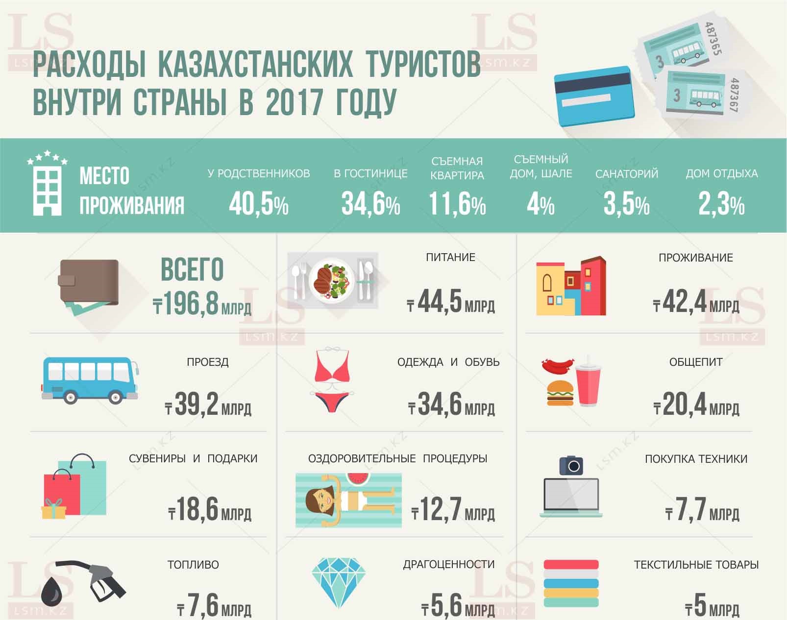 Казахстанцы потратили на отдых внутри страны в 2017 году 196,8 млрд тенге, передает LS.