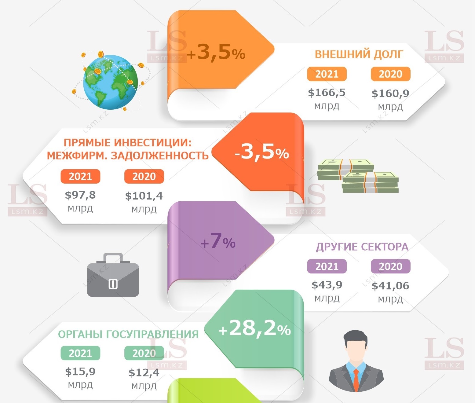 Внешний долг Казахстана превысил $166 млрд. Наибольший рост задолженности приходится на Нацбанк, передает LS.