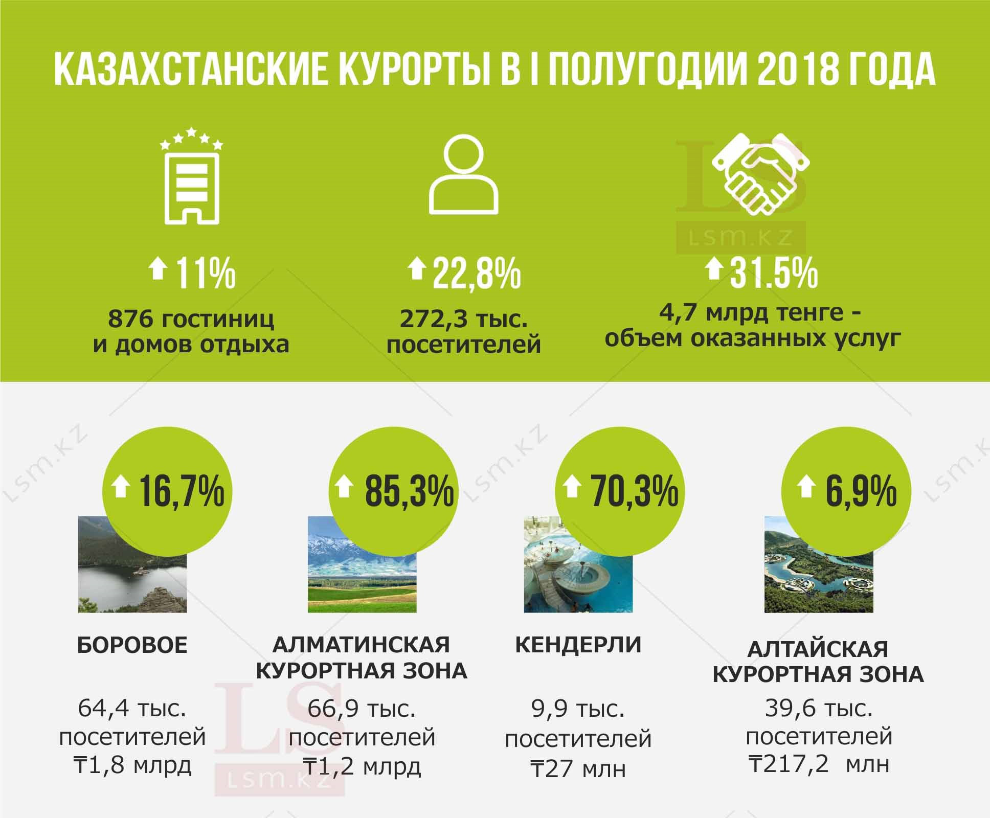 Дома отдыха за полгода заработали 4,7 млрд тенге. Их выручка увеличилась на 31,5%.