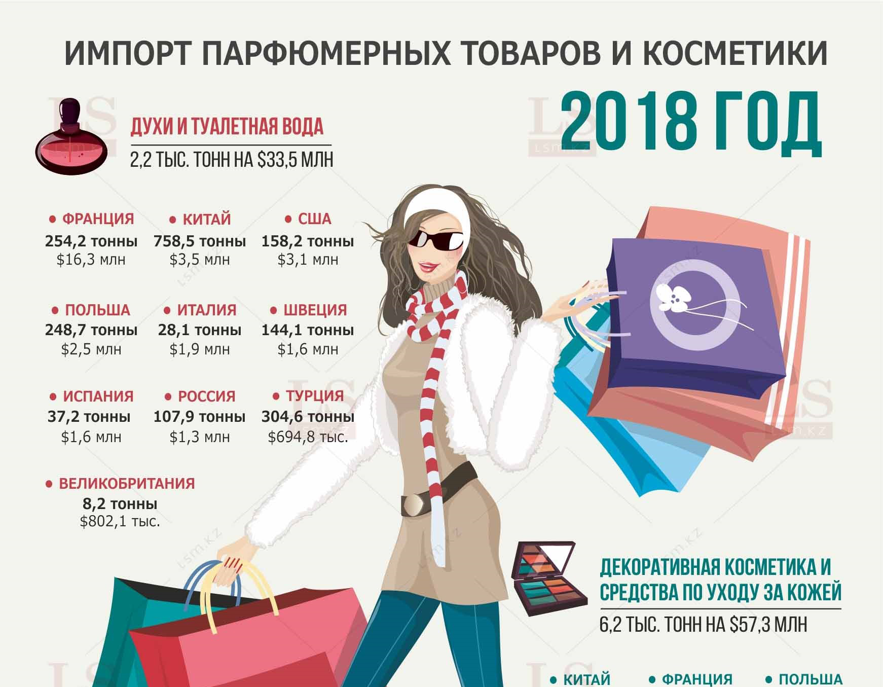 В 2018 году в Казахстан завезли 2,2 тыс. тонн духов и туалетной воды на $33,5 млн, передает LS.