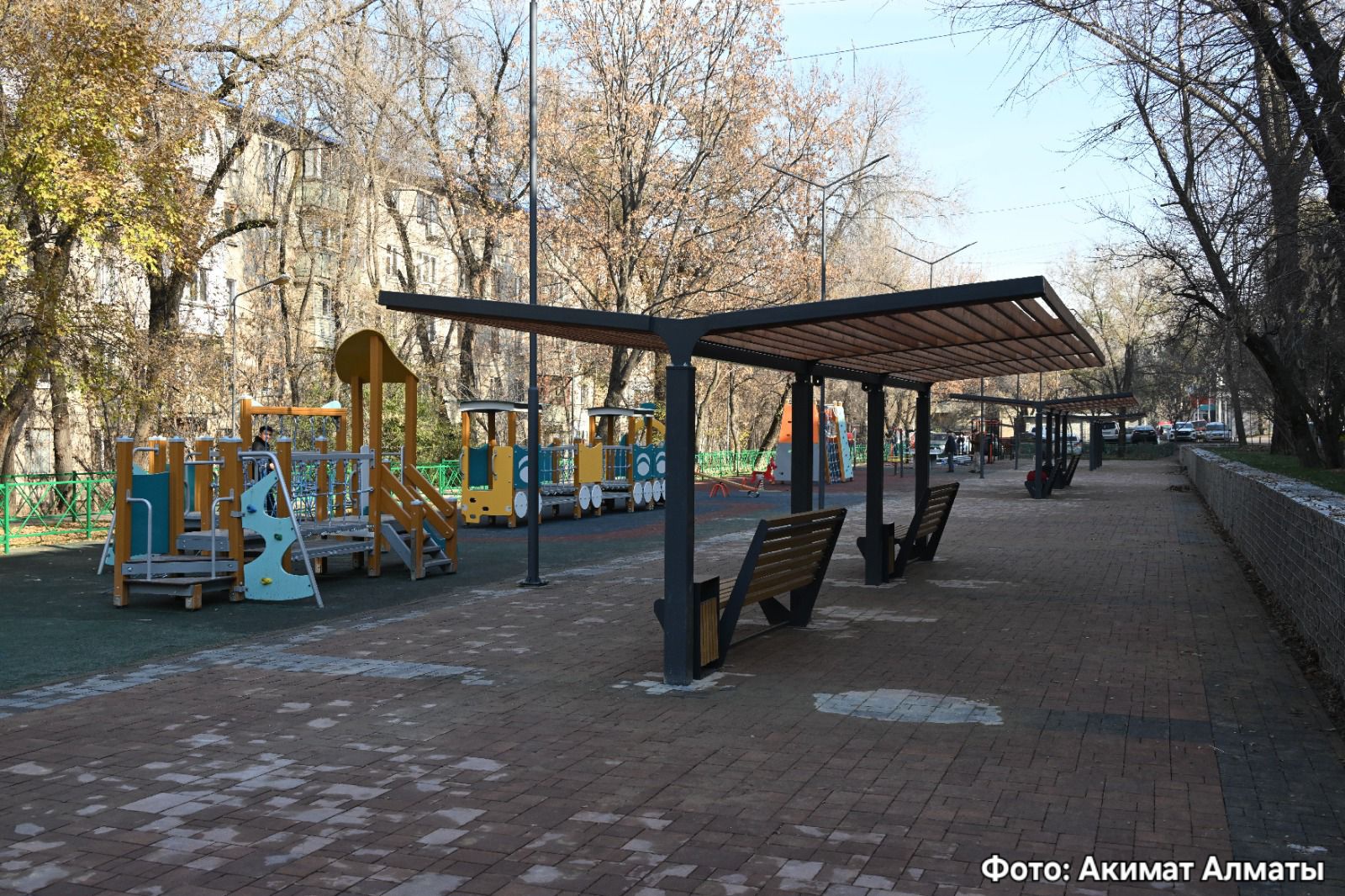 Вдоль пешеходной зоны размещены шахматный стол, спортивные тренажеры и зоны для воркаута. Для маленьких жителей города обустроена детская площадка. Благоустройство территории, увеличение количества игровых оборудований, спортивных инвентарей и зон отдыха заметно разнообразит ежедневные будни жителей.