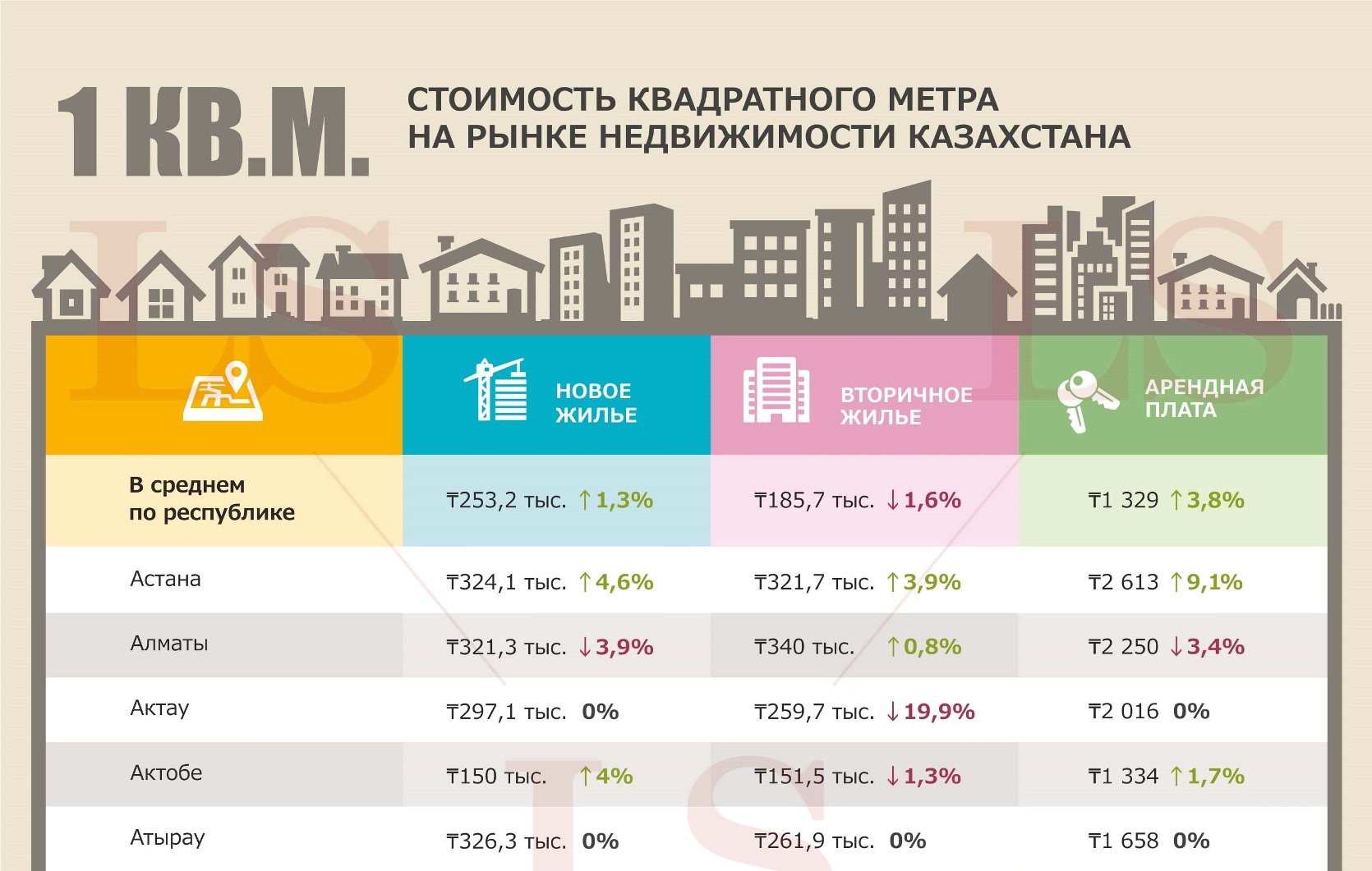 Как выяснилось, в Алматы квадратный метр на рынке вторичного жилья на 19 тыс. тенге дороже, чем на первичном. Кроме того, Алматы стал единственным городом, где средняя стоимость арендной платы за год снизилась.