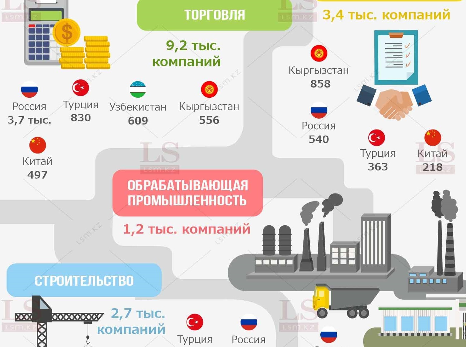 В Казахстане работает более 24 тыс. иностранных компаний. LS выяснил, какие страны открывают бизнес в разных сферах экономики.