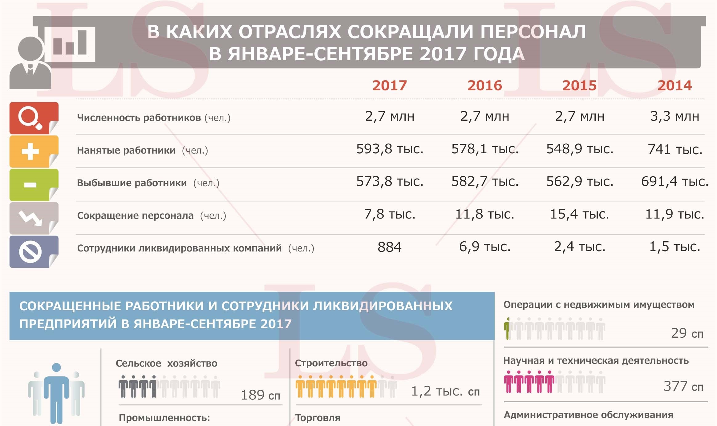 За это время по разным причинам выбыло 573,8 тыс. человек. При этом компании сократили 7,8 тыс. человек, а 884 сотруника лишились работы в результате ликвидации предприятия.