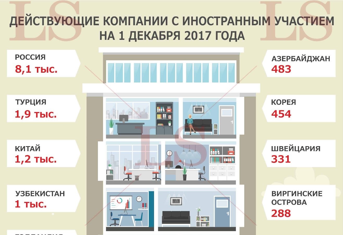 В Казахстане на 1 декабря 2017 года действует 23,6 тыс. компаний с иностранным участием, передает LS.