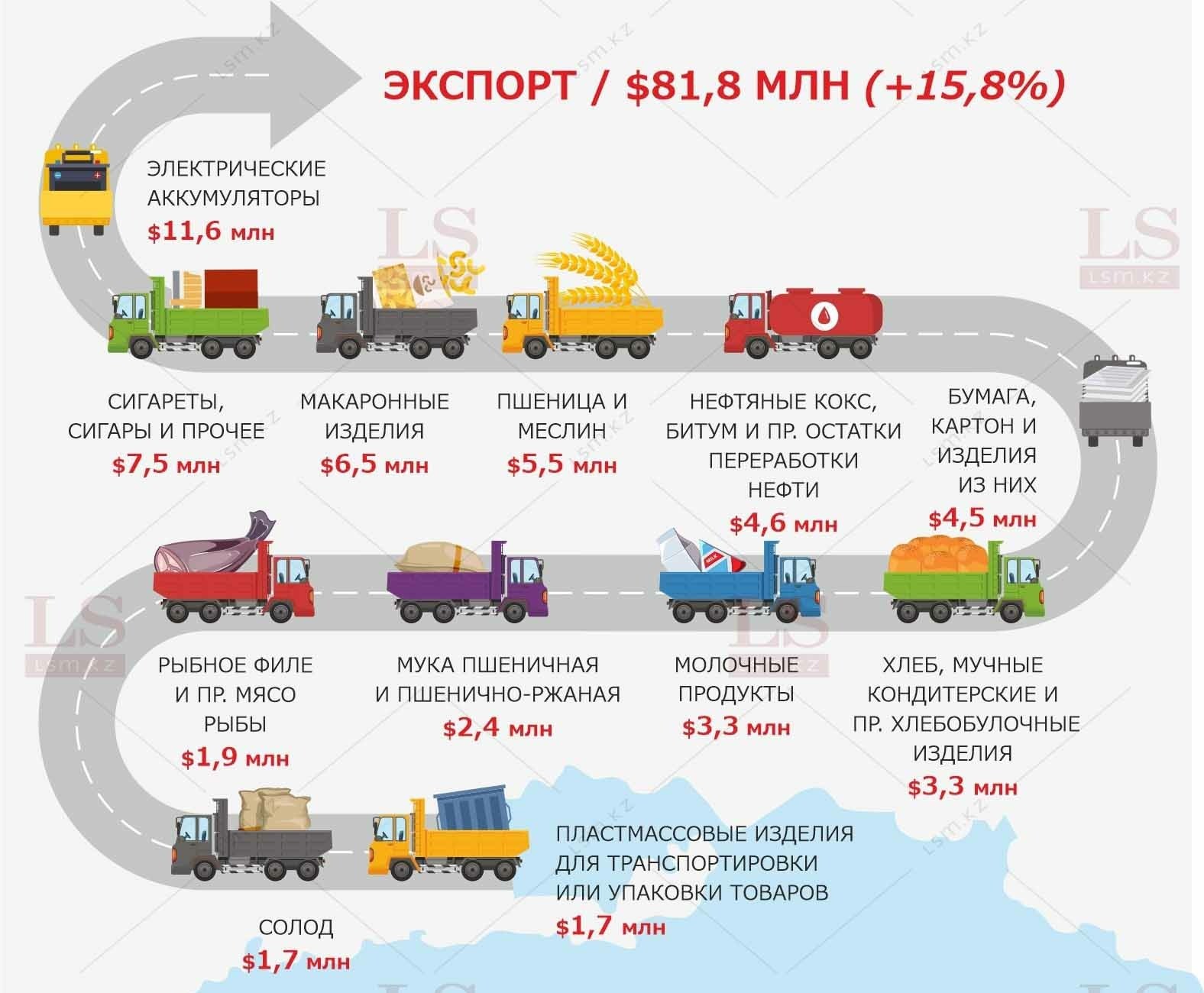 В то же время импорт в Алматинскую область, напротив, снизился – на 21,2%, до $377,5 млн.